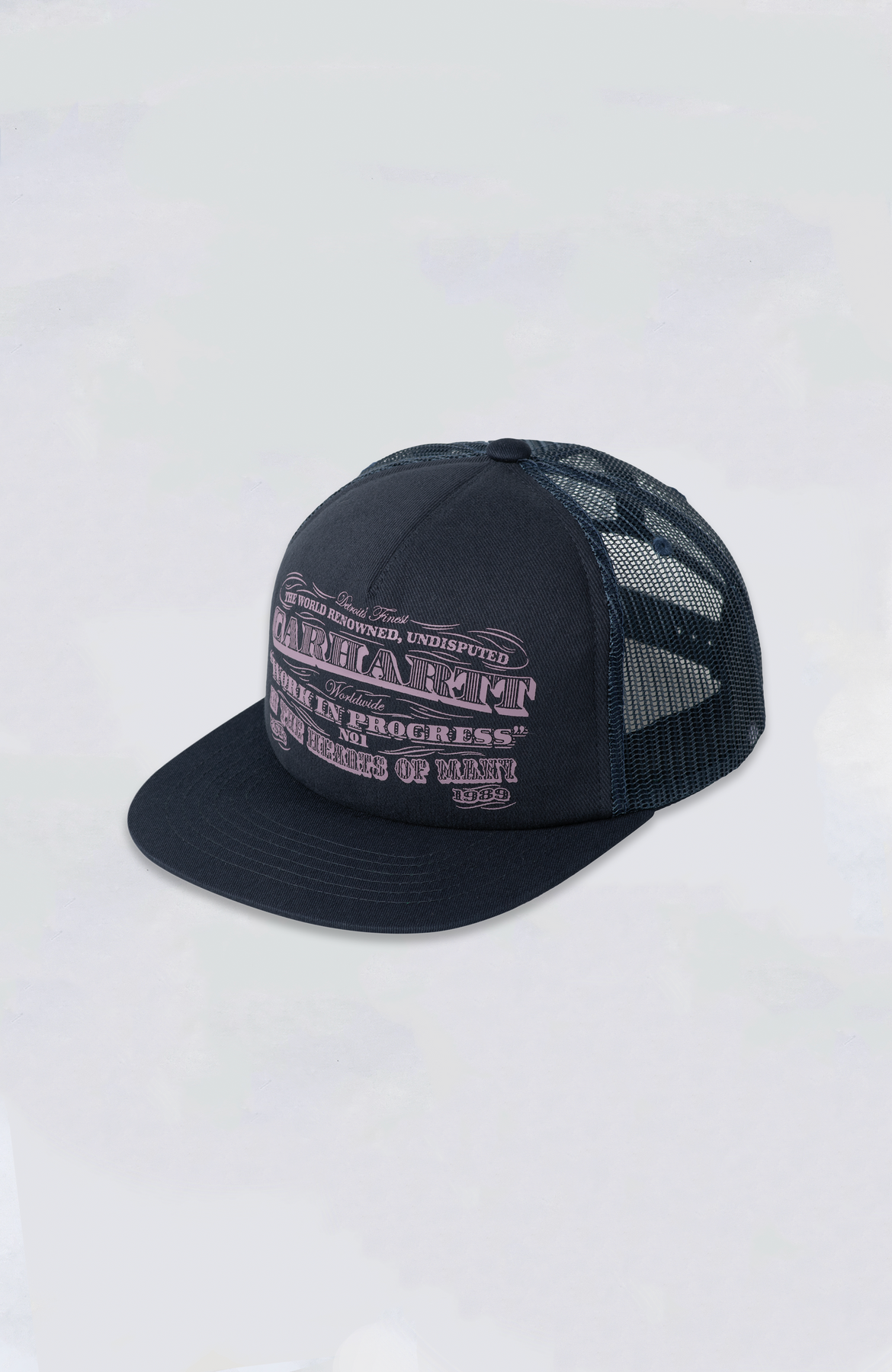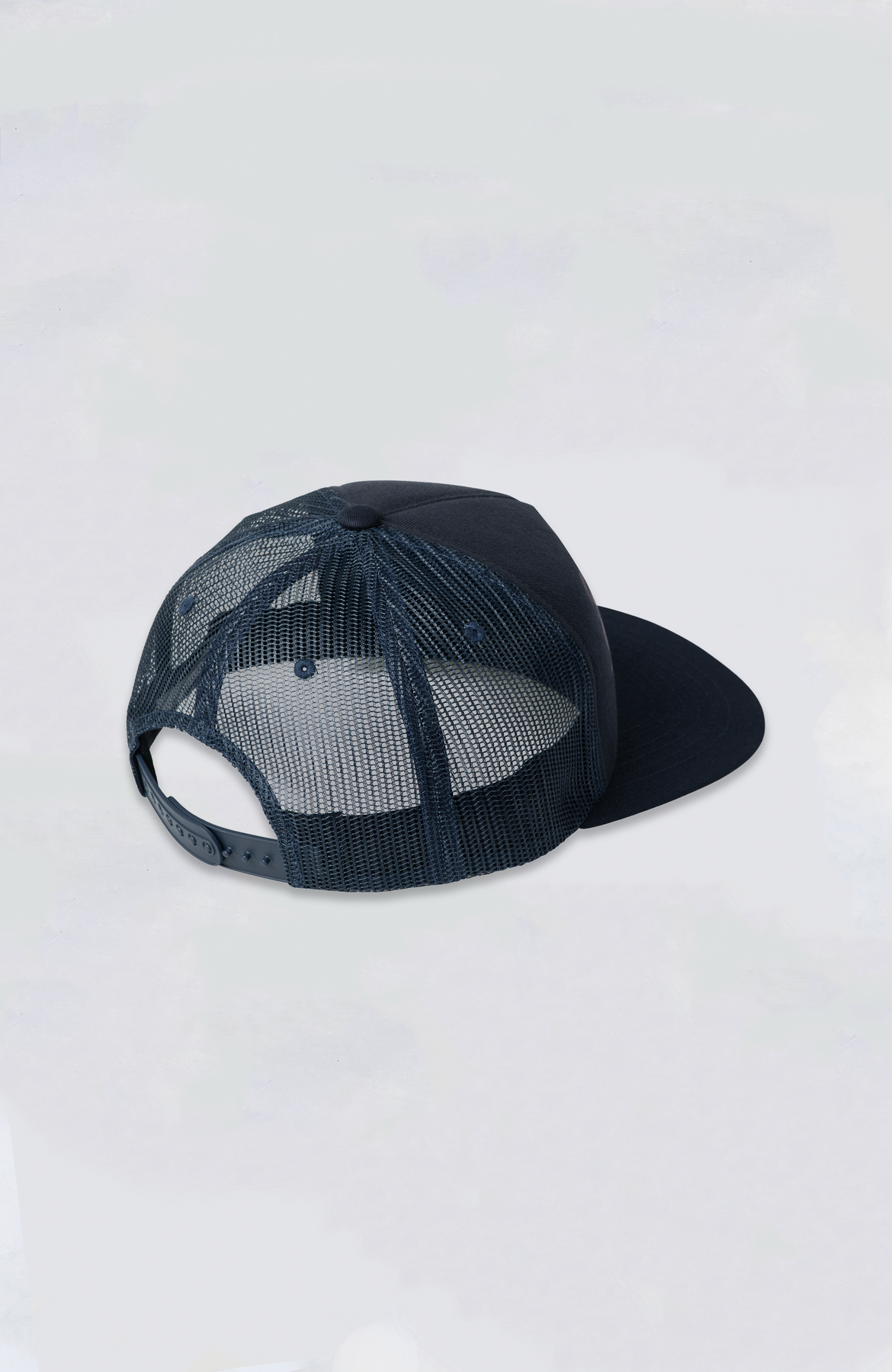 The 3 One 3 Trucker Cap is a structured, five-panel style made from midweight stretch-cotton twill. The item features reinforced, lined front panels as well as a firm, flat peak. A graphic print appears on the front.