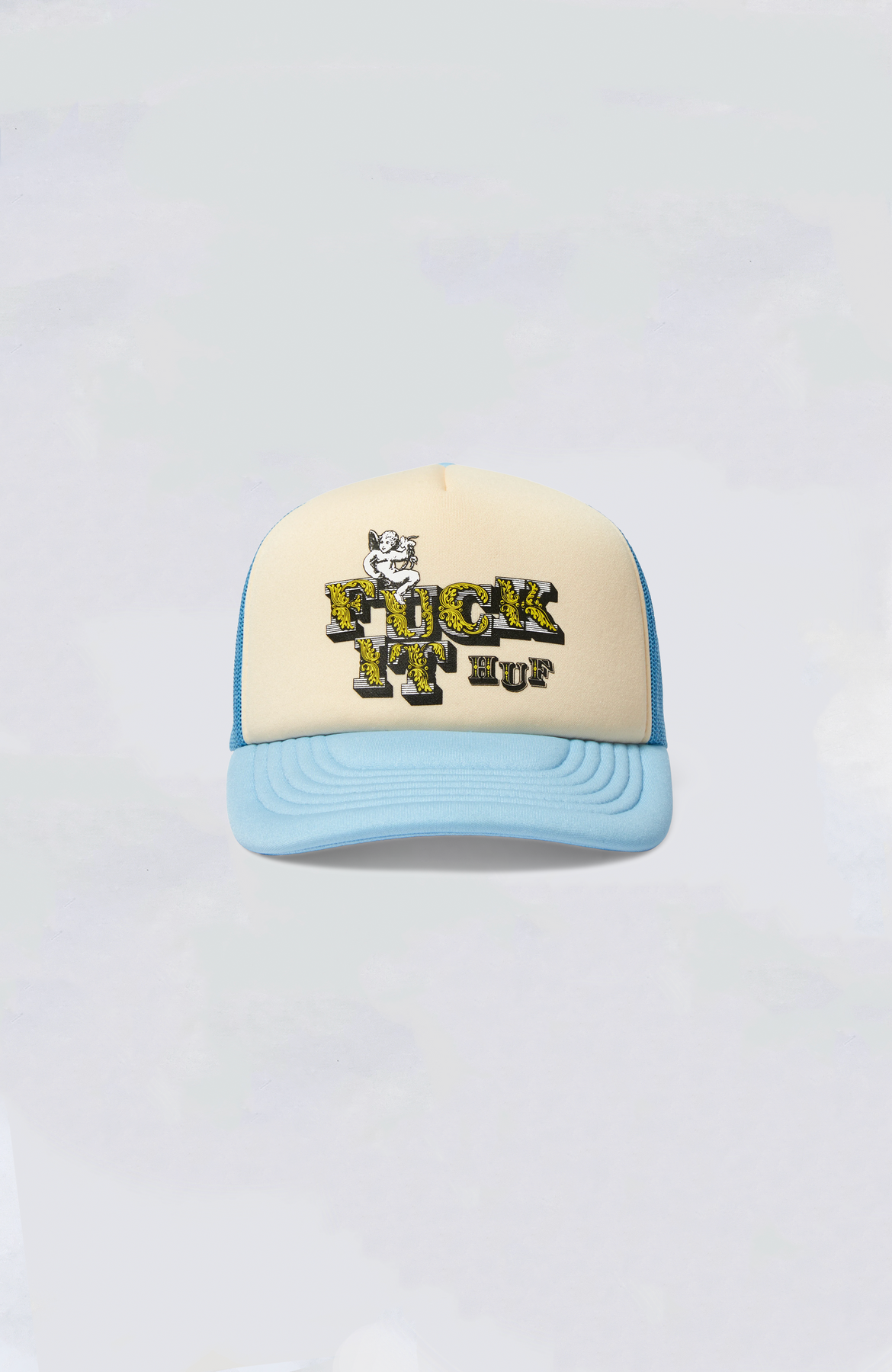 HUF mesh trucker hat Divine printed artwork at front crown.
