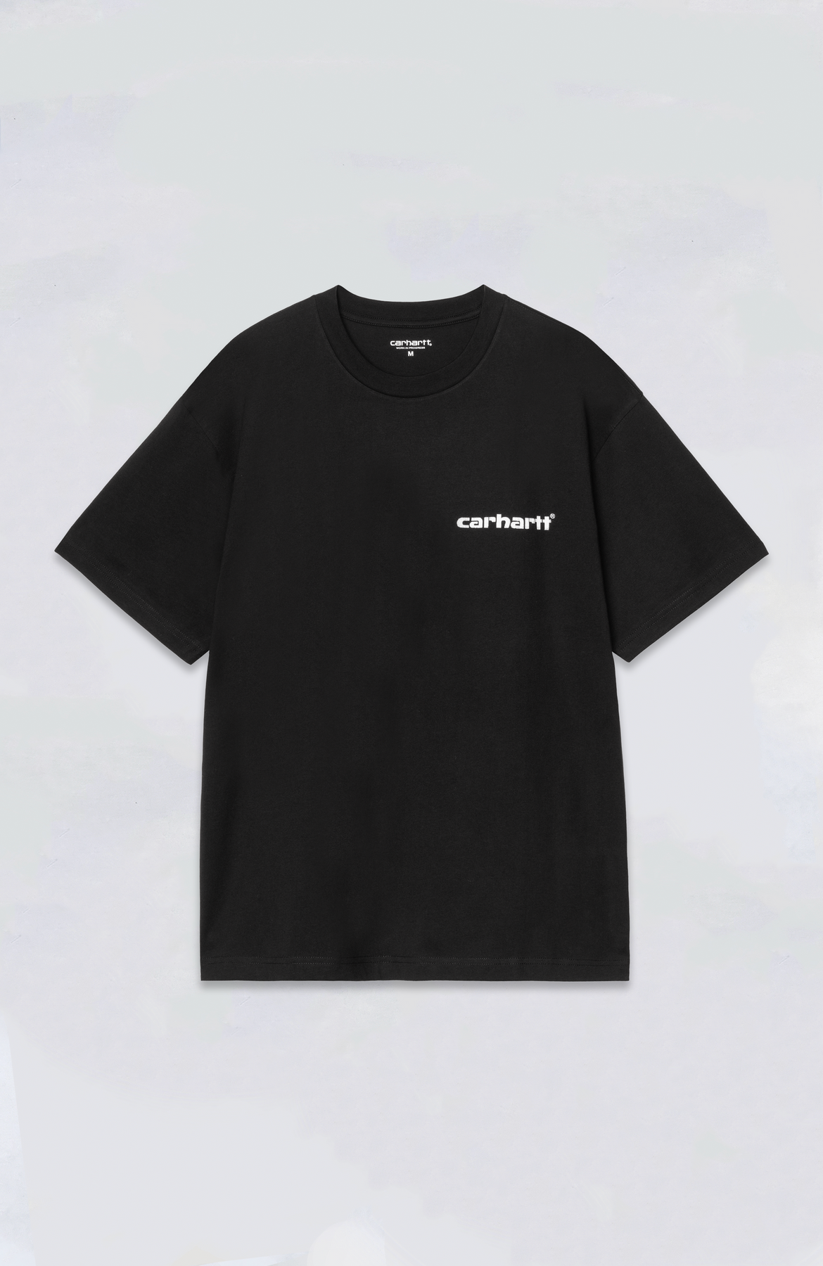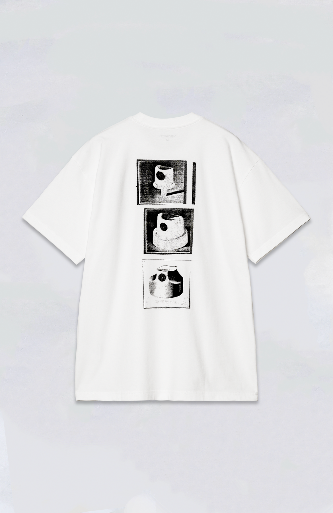 The S/S Caps T-Shirt is made in a loose fit from a midweight cotton jersey. Graphic prints appear on the front and back.