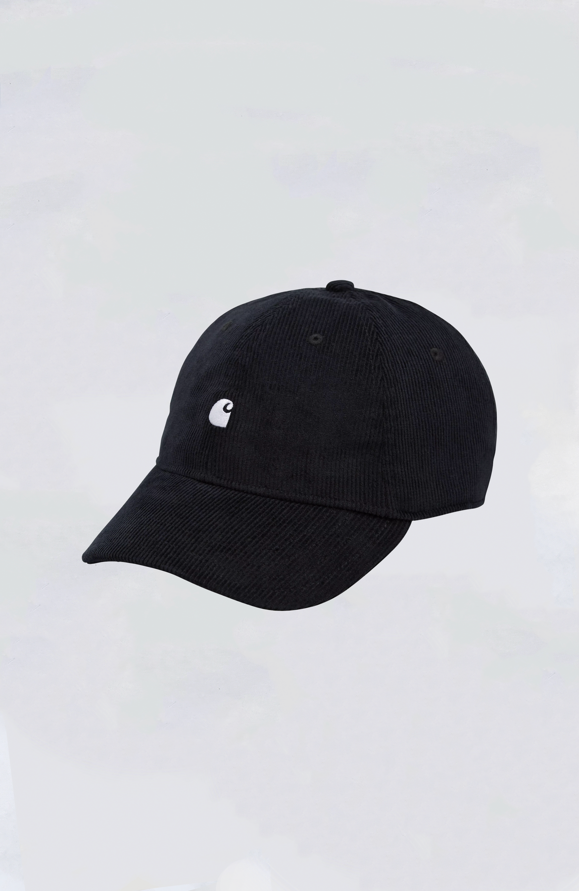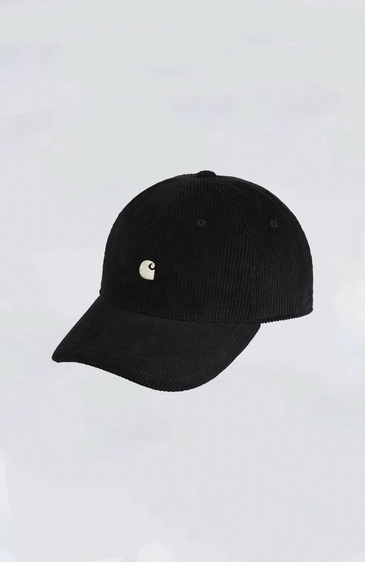 The Harlem Cap is an unlined six-panel style with a firm, curved peak. It is constructed from heavyweight, 11 wale cotton corduroy. An embroidered 'C' Logo appears on the front.