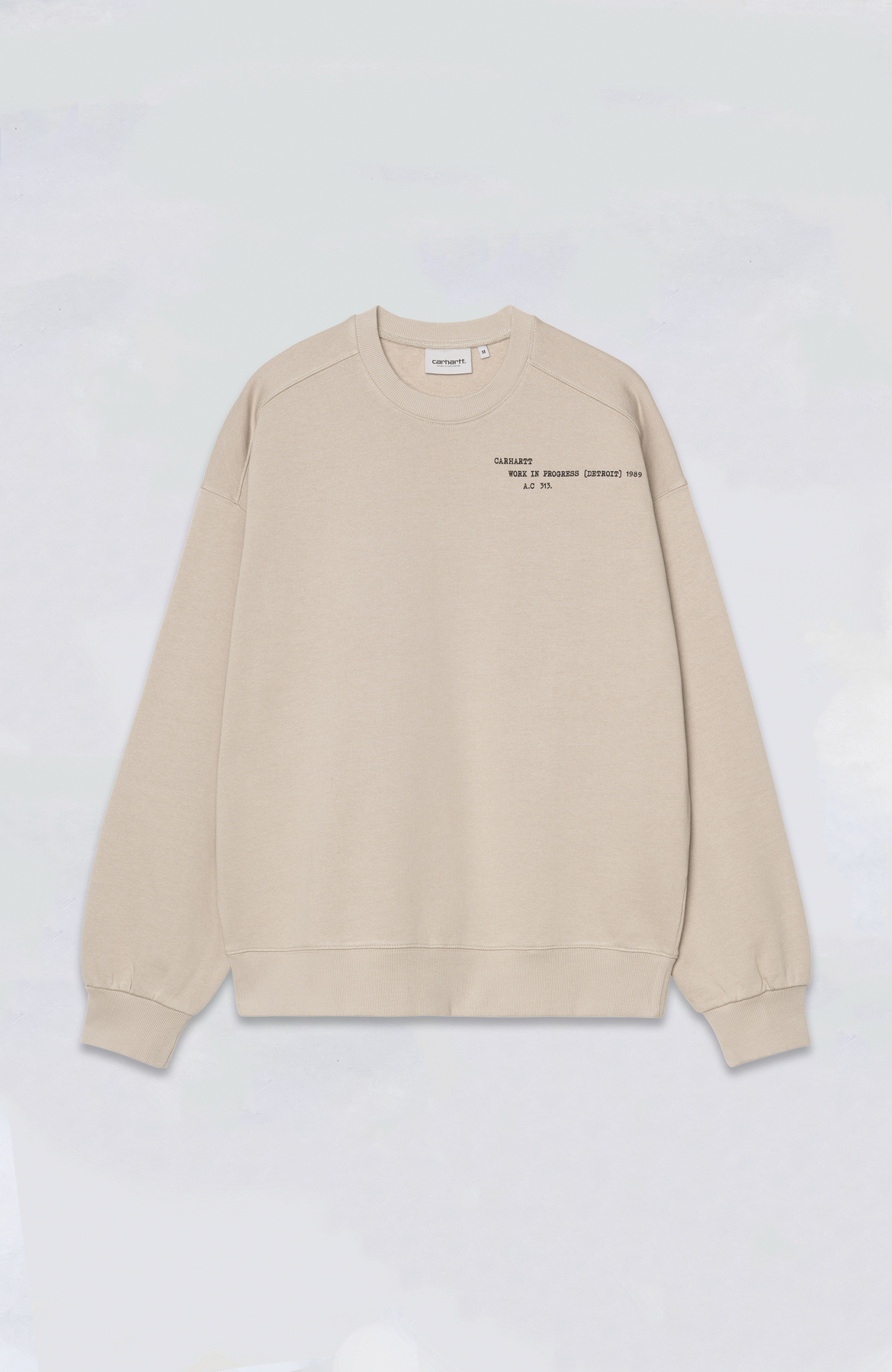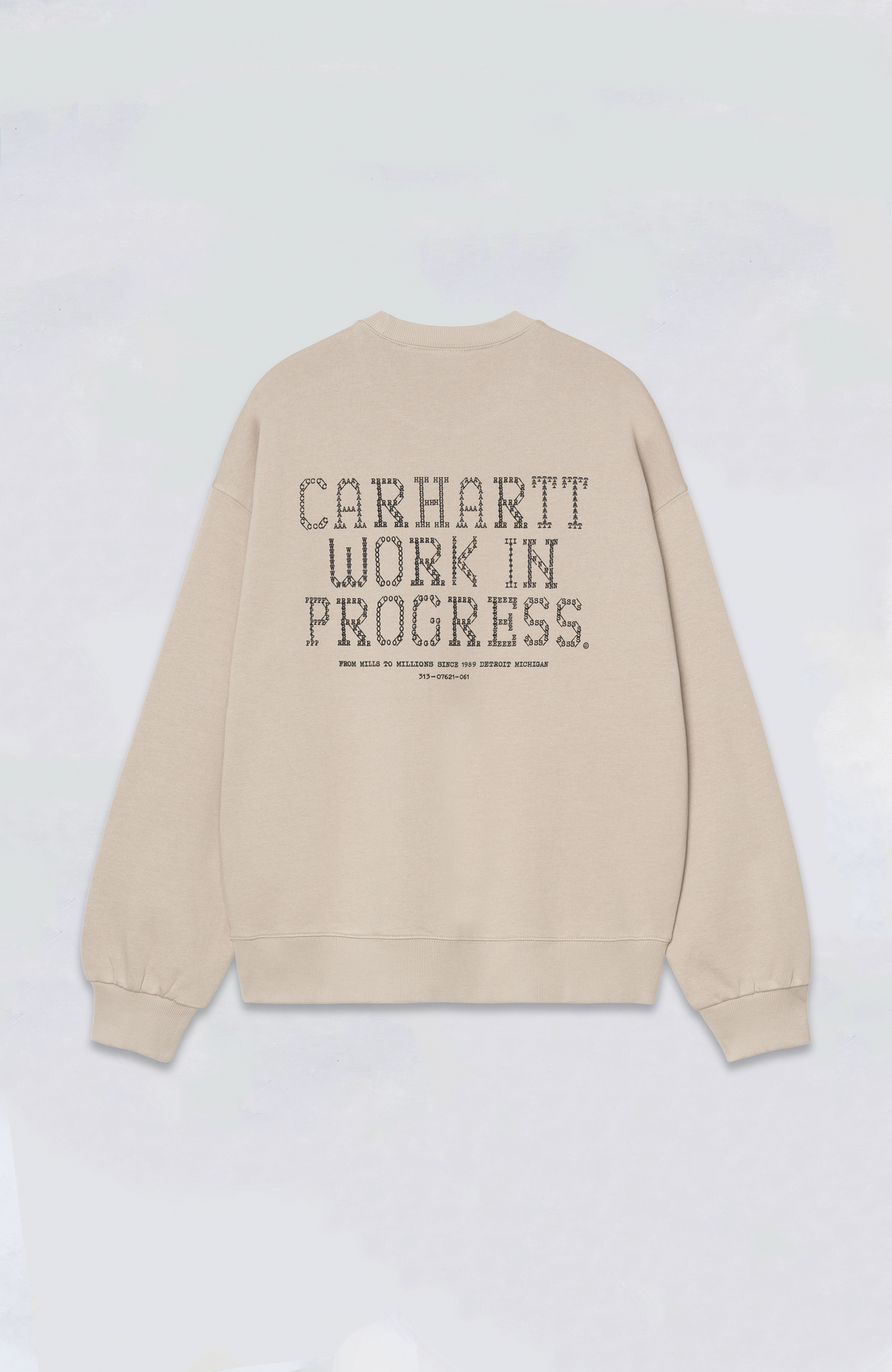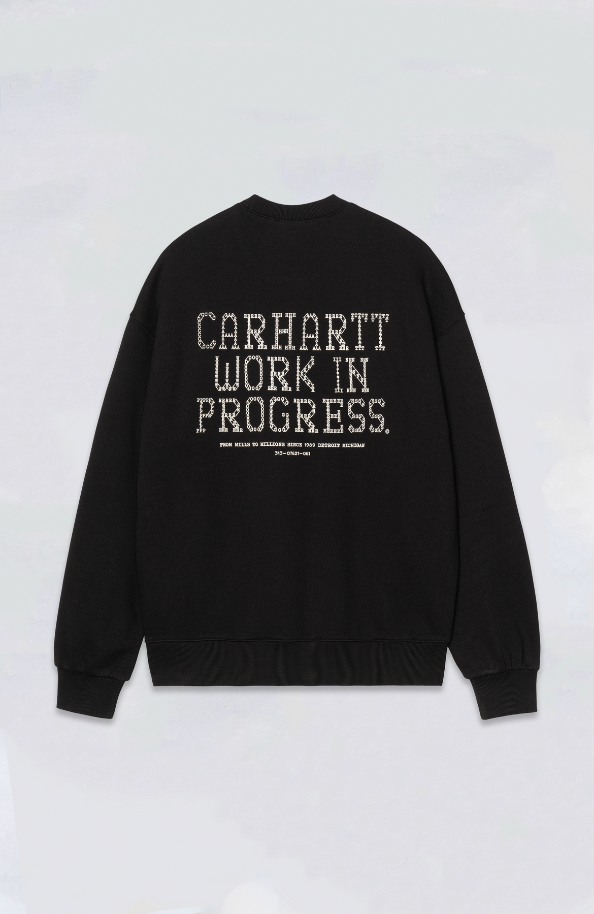 The Punched Sweatshirt is made from a heavyweight, unbrushed cotton fabric with a tactile loopback construction. It’s cut in a balloon fit, which is a little looser and boxier, but also characterized by dropped shoulders and ribbed trims. Graphic prints appear on the front and back.